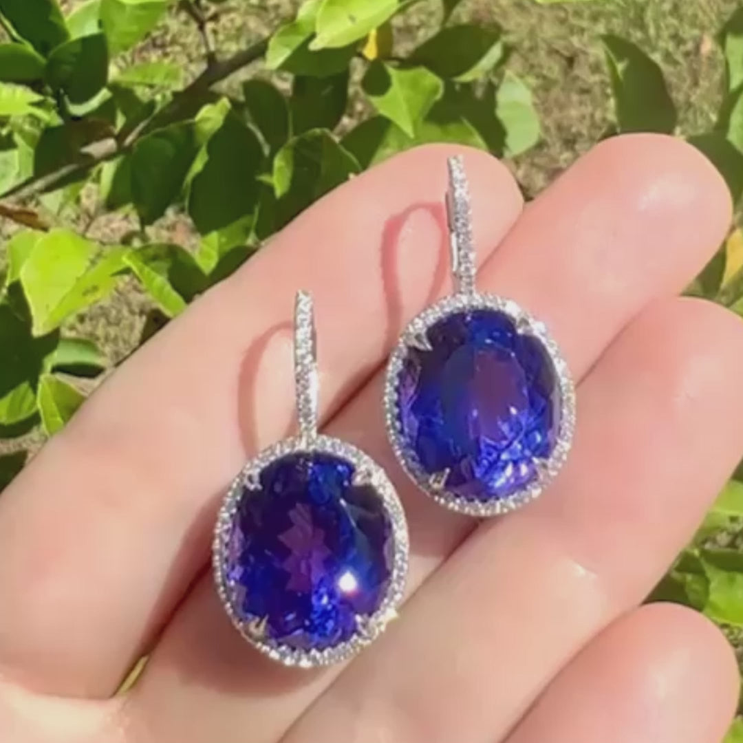 A very classic pair of oval cut Tanzanite drop earrings weighing over 30CTs.